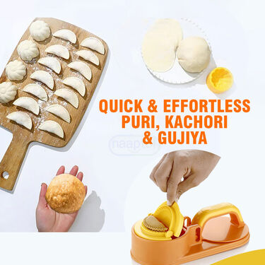 This 4-in-1 puri, kachori, gujiya, and momo maker is a versatile kitchen tool crafted from high-quality plastic. It allows you to effortlessly prepare a variety of Indian snacks with consistent shapes and sizes. Ideal for busy individuals and families, it speeds up the snack-making process, saving you time and effort. The maker ensures a hygienic cooking experience, using food-grade materials for safety. With its ease of use, you can create unique and creative snacks, impressing family and guests. The durable construction promises long-term reliability, making it a valuable addition to any kitchen.