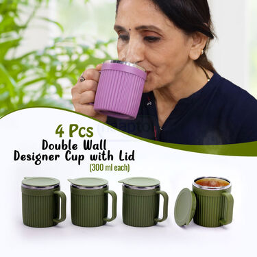 LOCK IN TH EHEAT, SEAL IN THE CHILL - 4 Pcs Double Wall Designer Cup With lid (4CL2)