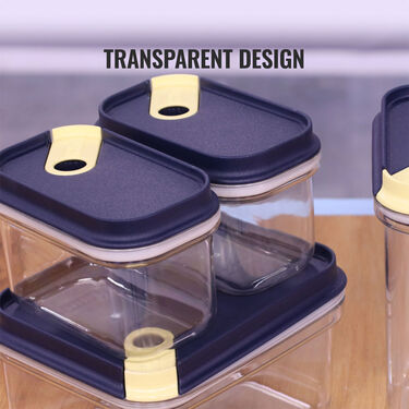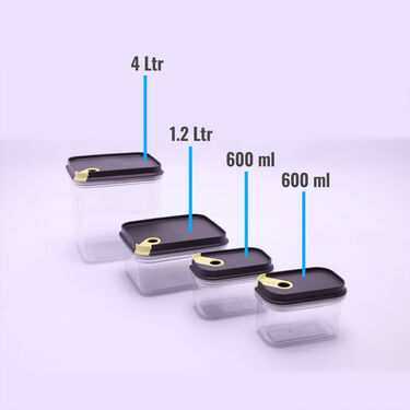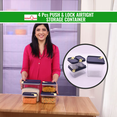 Store smarter with 4 Push & Lock Airtight Containers. Designed for Indian kitchens, they offer maximum freshness, visibility, and space efficiency. Unlike steel containers, you can easily see whats inside, from snacks to semi liquid foods like sauces, daliya, kheer, and more.