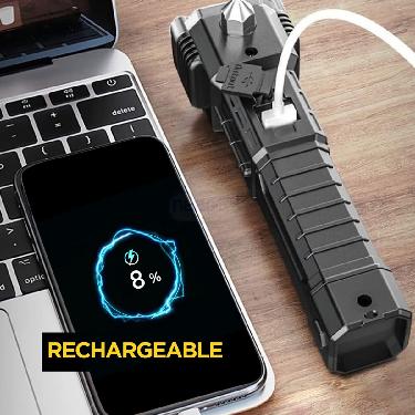 The 6 in 1 Hammer Torch set offers the convenience of a hammer, flashlight, emergency light, cutter, power bank, and work light, making it an ideal companion for any emergency or repair situation.