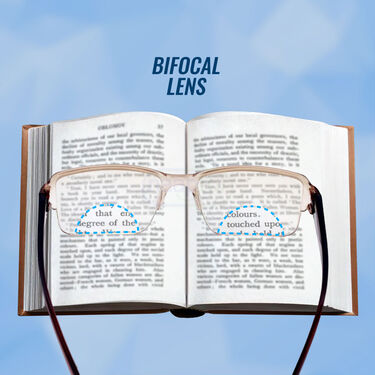 - These bifocal glasses feature a reading area with adaptive power which fits within a specific power range, while the distance viewing area has no added power (zero power).