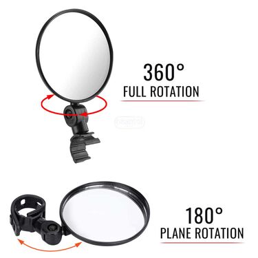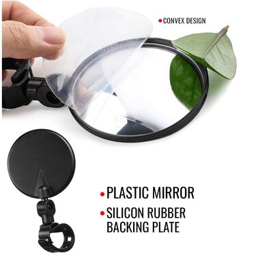 Bike Rear View Safe Mirrors are designed for ultimate visibility and safety. Featuring a handlebar mount, these lightweight and durable mirrors are made from acrylic with a plastic mirror, silicon rubber backing plate, and handle. The convex mirror offers a wide field of view and 360-degree rotation, ensuring you can see every direction behind you. The adjustable rubber buckle strap allows for easy installation without tools, snapping on in minutes. With 180-degree plane rotation, you can easily adjust the mirror's position for the best view