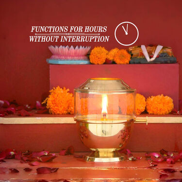 The Brass Akhand Diya with Adjustable Bati is a beautifully crafted traditional diya made from high-quality brass. It features an adjustable wick, allowing for a customizable flame that can burn for long hours without extinguishing. Perfect for religious ceremonies or as an elegant decor piece, this diya provides consistent light and is designed to last. Its durable construction ensures it stays lit for extended periods, bringing a sense of peace and tranquility.
