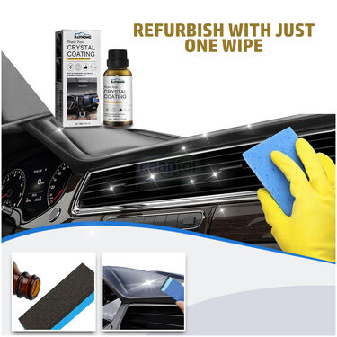 Does your car look dull in the parking lot. Give it a like new shine with this crystal coating made for plastic and fibre parts. Perfect for dashboards, trims, door panels, and more. Just one swipe for a stunning makeover.