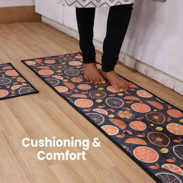 The cushioning and comfort provided by the Designer Antiskid Kitchen Runner & Mat Combo make standing for long periods in the kitchen much more comfortable. Whether you are chopping vegetables, washing dishes, or cooking, the soft surface reduces strain on your feet, legs, and lower back