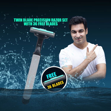 SHAVE SMART, SHAVE SHARP - Twin blade Precision Razor set with 36 Free Blades (MR37)