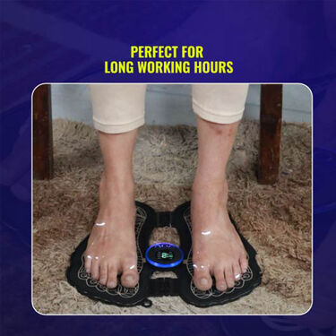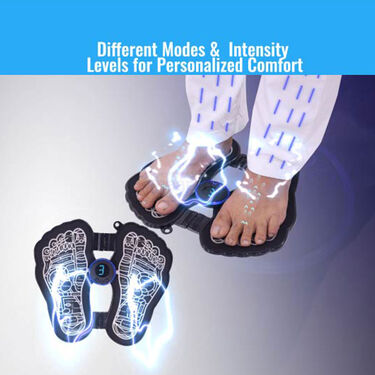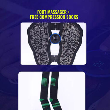 The EMS Foot Massager helps relax tired muscles and improve circulation. The free compression socks help provide additional comfort and support.