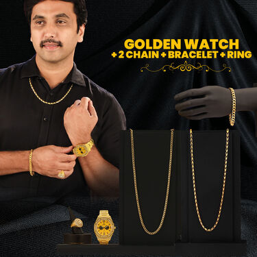 Golden Watch + 2 Chain + Bracelet + Ring (MGW2CBR6)