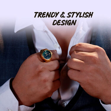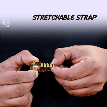 This golden finish watch ring blends style with functionality, giving you a trendy accessory that also keeps time. With its stretchable strap and elegant design, its perfect for daily wear or special occasions.