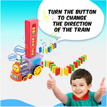 This domino train creates a colorful trail of dominos with lights and music, making setup effortless. Itâ??s perfect for kids to enjoy independent play while fostering creativity and developmental skills.
