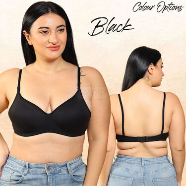 This pack of 3 wirefree padded bras offers comfort and support for everyday wear. Made from soft poly-cotton fabric, these bras are skin-friendly, odor-free, and easy to wash at home. The neutral colorsâ??magenta, black, and beigeâ??make them perfect for matching with various outfits. Designed for all-day use, they provide a comfortable fit without the bulky weight. Ideal for sports, special occasions, and regular wear, they cater to women of all ages. The brasâ?? stretchy material ensures gentle support, especially suitable for pregnancy. With no ironing required, maintenance is hassle-free. Available in sizes 32 to 40