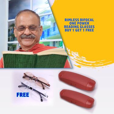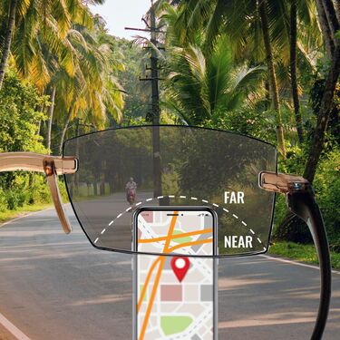 Experience enhanced vision with smart bifocal glasses designed for both near adaptive vision fits power range between +0.5 to +2.5 and zero distance power. Featuring a rimless lightweight frame for everyday comfort.Designed exclusively for near vision, they do not correct distance eyesight