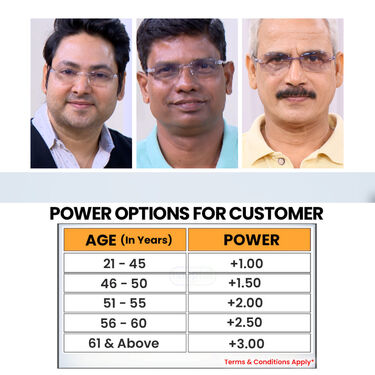 These bifocal reading glasses let you choose your reading power from +1.0 to +3.0, with zero power for distance. Designed exclusively for near vision, they do not correct distance eyesight