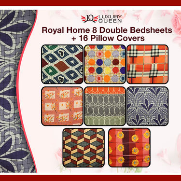 Featured with bright & elegant designs, Royal Home 8 Double Bedsheets + 16 Pillow Covers (8BS18) is a worthy pick. Made from Super Soft fabric, they are skin-friendly, shrink-proof & durable ensuring comfortable & undisturbed sleep. Moreover, they are colourfast and anti-wrinkle thus easy to maintain and wash. The combo comes with matching pillow covers that gives a stylish makeover to your bedroom interiors instantly.