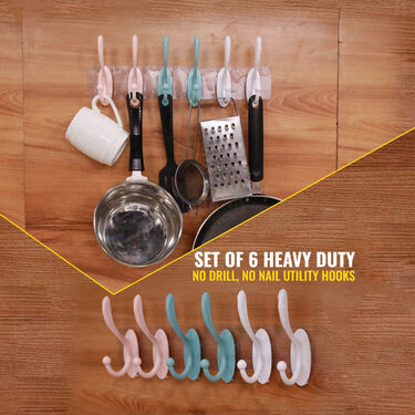 Set of 6 Heavy Duty No Drill No Nail Utility Hooks (6H1)