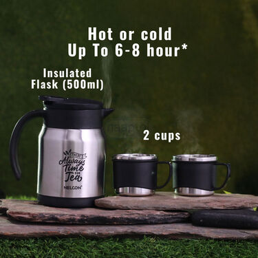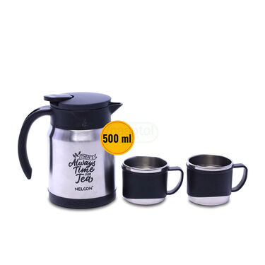 Stainless Steel Insulated Tea Kettle (500 ml) With 2 Steel Cups (1TK2C)
