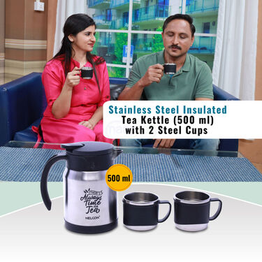 HOT SIPS, ANYTIME -Stainless Steel Insulated Tea Kettle (500 ml) with 2 Steel Cups (1TK2C)
