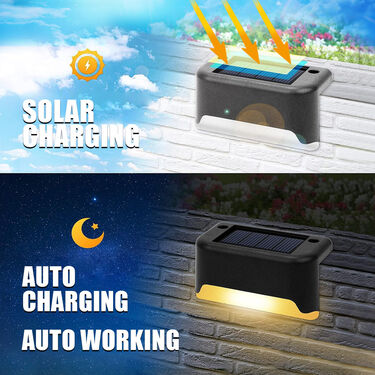 These waterproof solar deck lights offer a warm white glow with 3 lumens brightness, making them ideal for various outdoor settings. They are designed for easy installation with no wiring required; simply use the included screws to place them vertically or lay them flat along edges. The lights charge in 4-5 hours of sunlight and automatically turn on at dusk, providing up to 7 hours of illumination. Perfect for lighting stairs, paths, patios, decks, and gardens, they enhance both security and decoration. Durable and weather-resistant, these lights are built to withstand harsh conditions while adding a stylish touch to your outdoor spaces